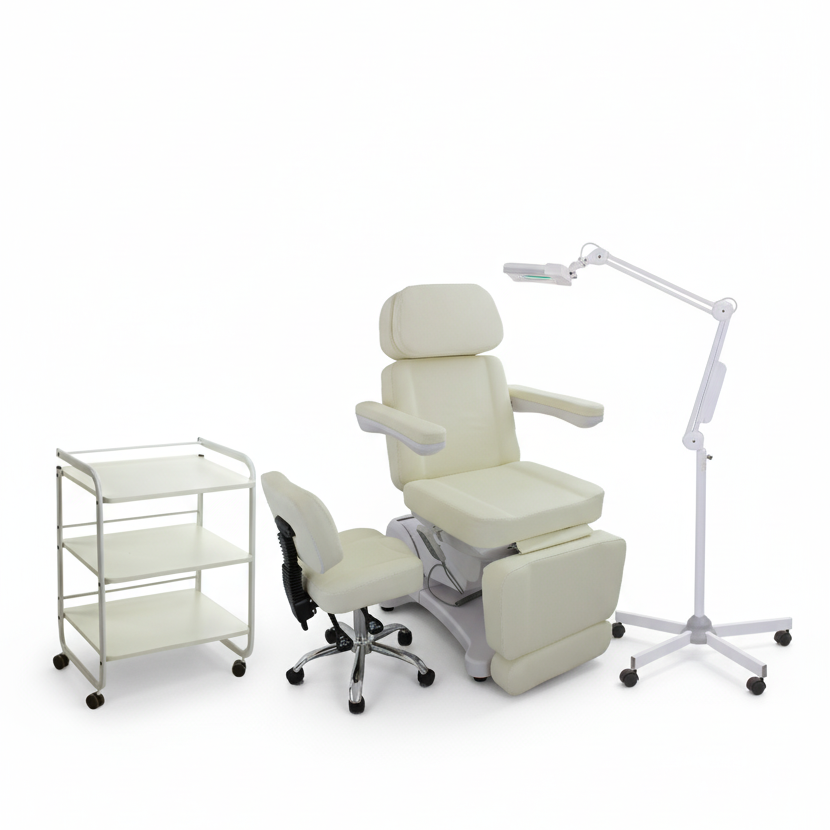 Die Kosmetikkabine besteht aus: Vollelectrisch Kosmetikliege 107701 Arbeitshocker... more