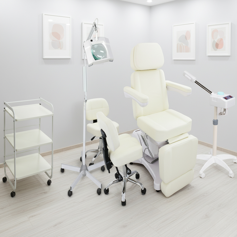 Die Kosmetikkabine besteht aus: Mechanische Kosmetikliege 107701 Arbeitshocker... more