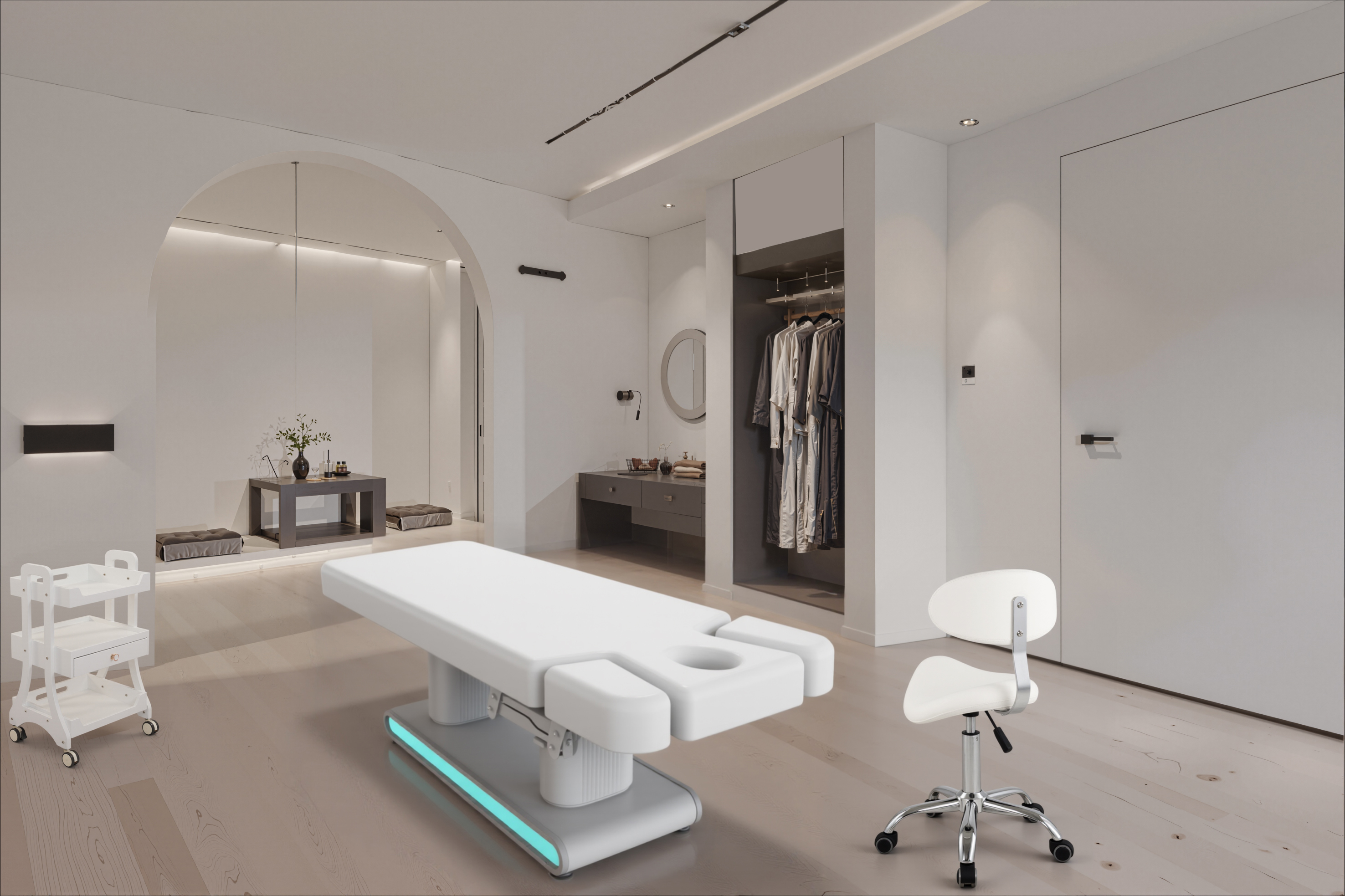 Diese Liege ist für professionelle Behandlungs- und Massageanwendungen konzipiert und bietet vielseitige Verstellmöglichkeiten für eine komfortable Positionierung. Mit einer hohen Belastbarkeit und einer dicken Polsterung ist sie auf den Studioalltag ausgelegt.