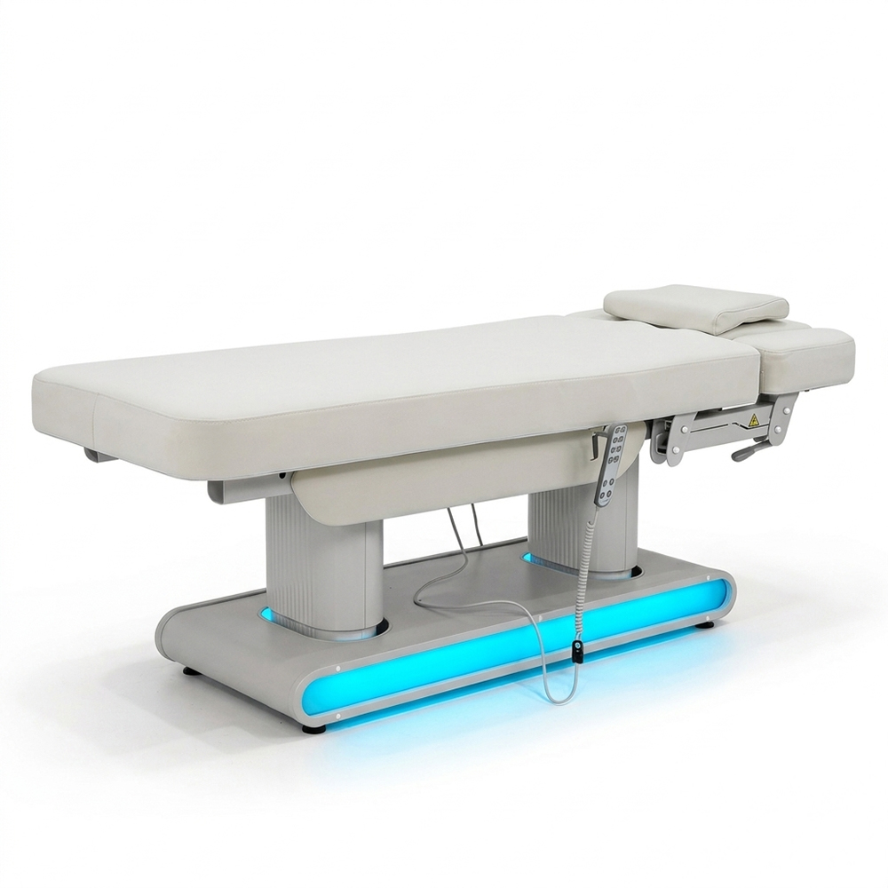Elektrische Wellnessliege Massageliege Euro 4 Motoren Heizung LED hell-grau... Contenuto 1 pezzo