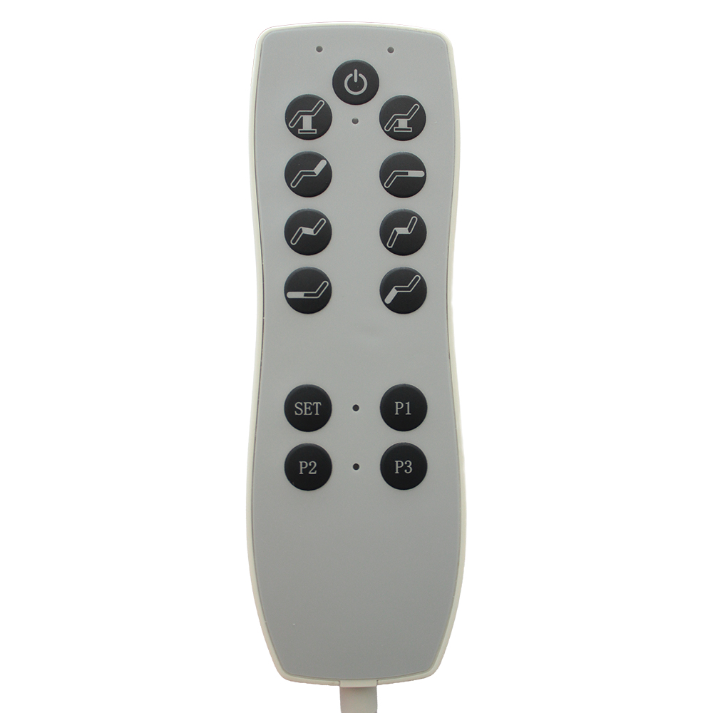 Hauptsteuerung per Handfernbedienung, beidseitige Fußsteuerung sowie zusätzliche Bedientasten direkt am Sitz und an der Rückenlehne